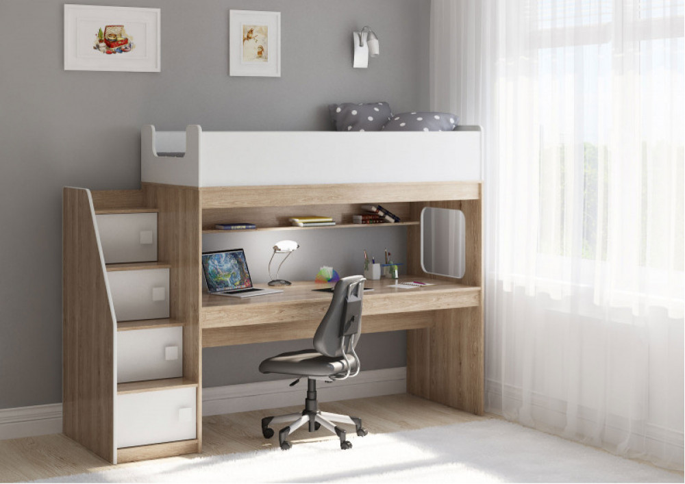 Учебная зона со столом под спальным местом открывает возможности для письменных работ,а также здесь удобно расположить ноутбук.